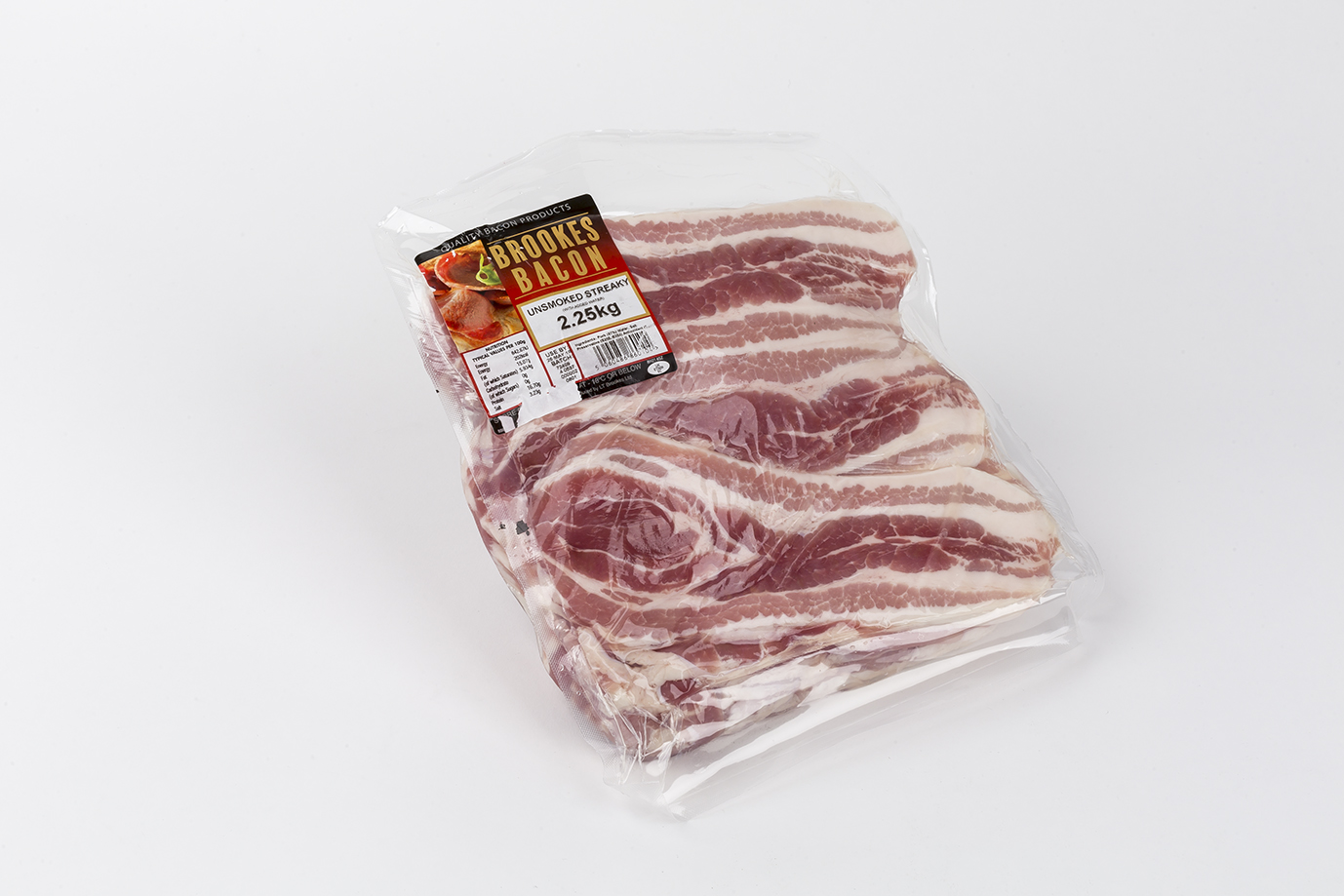 BAC0025Brookes Streaky Rindless Bacon 2.27kg (5LB PACKS)